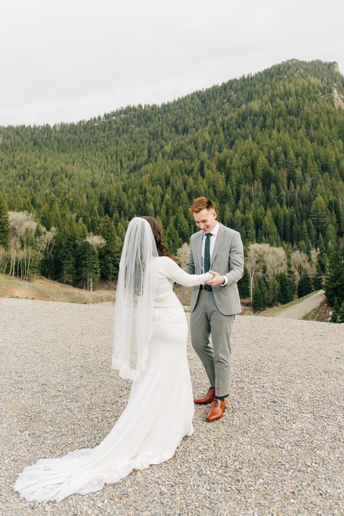 There is nothing that even compares to the mountains during the summer here in Utah. You pair that with a stunning couple, dress up in their wedding attire and we are set up for a perfect evening. Our night started out with a first look with the sweetest reaction and the night ended with laughs and giggles. I even convinced them to show off their dance moves because that is such a huge part of their love story and they really put on a show.